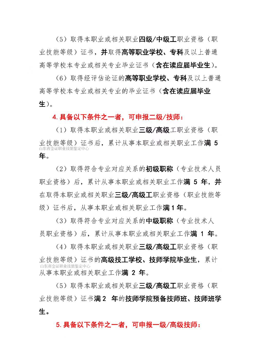 (3)取得符合专业对应关系的高级职称(专业技术人员职业资格)后,累计从事本职业或相关职业工作满1年。报名机构:山东省金证职业技能鉴定中心