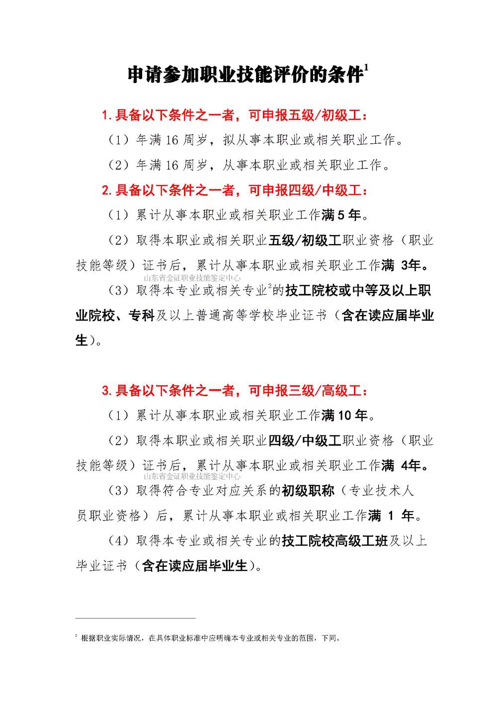 (3)取得符合专业对应关系的高级职称(专业技术人员职业资格)后,累计从事本职业或相关职业工作满1年。报名机构:山东省金证职业技能鉴定中心